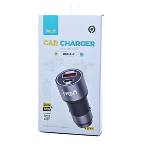 Ivon 45W Metal Car Charger - 1 USB-A & 2 USB-C Ports Fast Charging (CC43)