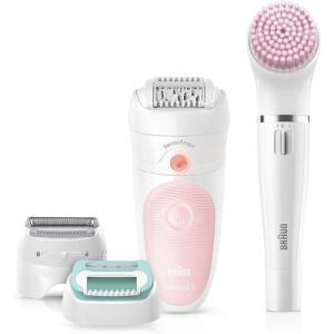 Braun Silk-épil 5, 4-in-1 Epilator Beauty Set, Gentle and Perfect for Beginners, for Face & Body, Remove Hair from the Root, Wet & Dry Use, 100% Waterproof, Gifts for Women, SES 5-875BS, White/Pink