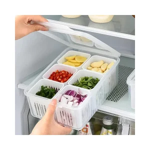 Airtight Refrigerator Food Fresh Box With 6 Pcs Detachable Drain Basket, Fridge Storage Containers With Lids, Sealed Refrigerator Food Fresh Box For Chopped Green Onion Ginger Garlic Vegetables