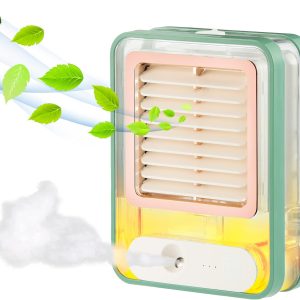 Small Desk Fan with Mist Spray,LED Night Light,Electric Battery Operated Water Misting Fan,USB Rechargeable Portable Quiet Mini Desktop Table Cooling Fan for Office,Camping,Indoor,Outdoor